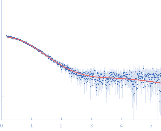 Synchrotron SAXS data from solutions of a 15 nucleotide RNA duplex (ATP-dependent RNA helicase DDX3X binding target) in 20 mM Tris, 150 mM NaCl, 10% (v/v) glycerol, 1 mM TCEP, pH 8 were collected on the SAXS/WAXS beam line at the Australian Synchrotron (Melbourne, Australia) using a Pilatus 1M detector at a sample-detector distance of 1.4 m and at a wavelength of λ = 0.103 nm (I(s) vs s, where s = 4πsinθ/λ, and 2θ is the scattering angle). In-line size-exclusion chromatography (SEC) SAS was employed. The SEC parameters were as follows: A 50.00 μl sample at 10 mg/ml was injected at a 0.30 ml/min flow rate onto a GE Superdex 200 5/150 column at 16°C. 31 successive 1 second frames were collected through the sample SEC elution peak. The data were normalized to the intensity of the transmitted beam and radially averaged; the scattering of the solvent-blank was subtracted.