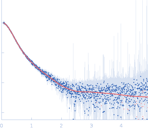 Synchrotron SAXS data from solutions of rabies CVS phosphoprotein (P1) in 25 mM HEPES, 150 mM NaCl, 1 mM TCEP, pH 7.4 were collected on the SAXS/WAXS beam line at the Australian Synchrotron (Melbourne, Australia) using a Pilatus3 S 2M detector at a sample-detector distance of 3.3 m and at a wavelength of λ = 0.10332 nm (I(s) vs s, where s = 4πsinθ/λ, and 2θ is the scattering angle). In-line size-exclusion chromatography (SEC) SAS was employed. The SEC parameters were as follows: A 50.00 μl sample at 5 mg/ml was injected at a 0.40 ml/min flow rate onto a GE Superose 6 5/150 column at 22°C. Twenty three 1 second frames were collected through the SEC elution peak. The data were normalized to the intensity of the transmitted beam and radially averaged; the scattering of the solvent-blank was subtracted.