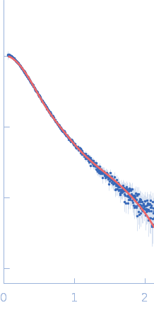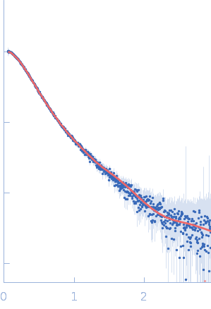 Synchrotron SAXS data from solutions of the K214/R260 mutant of rabies virus CVS Phosphoprotein Isoform 3 in 25 mM HEPES, 150 mM NaCl, 1 mM TCEP, pH 7.4 were collected on the SAXS/WAXS beam line at the Australian Synchrotron (Melbourne, Australia) using a Pilatus3 S 2M detector at a sample-detector distance of 3.3 m and at a wavelength of λ = 0.1033 nm (I(s) vs s, where s = 4πsinθ/λ, and 2θ is the scattering angle). In-line size-exclusion chromatography (SEC) co-flow (sheath) SAS was employed. The SEC parameters were as follows: A 50.00 μl sample at 5 mg/ml was injected at a 0.40 ml/min flow rate onto a GE Superose 6 Increase 5/150 column at 22°C. One 1 second frame was collected. The data were normalized to the intensity of the transmitted beam and radially averaged; the scattering of the solvent-blank was subtracted.