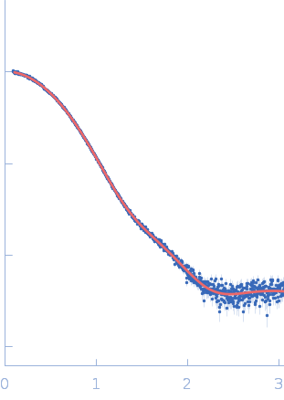 The low angle data collected at lower concentrations were extrapolated to infinite dilution and merged with the higher concentration data to yield the final composite scattering curve.