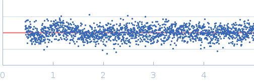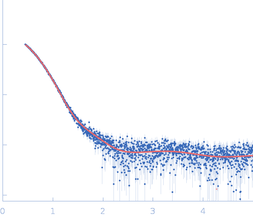Data set merged from three independent measurements of the same sample. CAUTION: Repulsive interparticle interference effects present in the sample result in inaccurate structural parameters (Rg, I(0), MW, Dmax) extracted from the data.