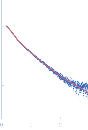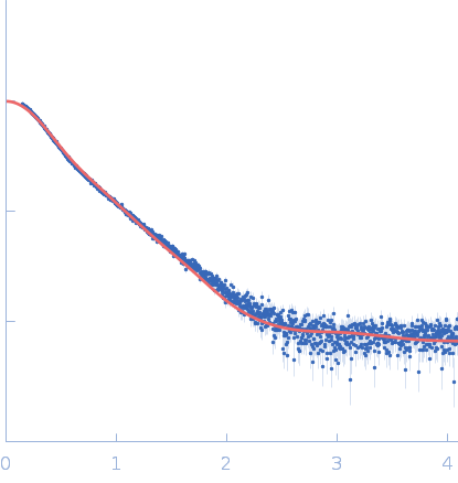 Synchrotron SAXS data from solutions of SdeA_CTD in 25 mM Tris-HCl, 200 mM NaCl, 5 mM DTT, pH 7.5 were collected on the EMBL P12 beam line at PETRA III (DESY; Hamburg, Germany) using a Pilatus 6M detector at a sample-detector distance of 3 m and at a wavelength of λ = 0.124 nm (I(s) vs s, where s = 4πsinθ/λ, and 2θ is the scattering angle). In-line size-exclusion chromatography (SEC) SAS was employed. The SEC parameters were as follows: A 100.00 μl sample at 16.5 mg/ml was injected at a 0.70 ml/min flow rate onto a GE Superdex 75 Increase 10/300 column at 25°C. 36 successive 1 second frames were collected through the main SEC elution peak. The data were normalized to the intensity of the transmitted beam and radially averaged; the scattering of the solvent-blank was subtracted.