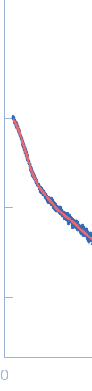 Synchrotron SAXS data from solutions of B2del81-124 in 5 mM Tris-HCl, 10 mM NaCl, 0.01% NP-40, 0.02 mM EDTA, 0.2 mM DTT, 0.5 mM MgCl2 and 1.5 % Glycerol, pH 7.9 were collected on the B21 beam line at the Diamond Light Source (Didcot, UK) using a Eiger 4M detector at a sample-detector distance of 3.7 m and at a wavelength of λ = 0.094 nm (I(s) vs s, where s = 4πsinθ/λ, and 2θ is the scattering angle). In-line size-exclusion chromatography (SEC) SAS was employed. The SEC parameters were as follows: A sample at 1.5 mg/ml was injected onto a Shodex 403KW-4F HPLC column at 15°C using a flow rate of 0.16 ml/min. 600 successive 3 second frames were collected. Eight successive 3 second frames were collected through the SEC elution peak of the sample. The data were normalized to the intensity of the transmitted beam and radially averaged; the scattering of the solvent-blank was subtracted. Due to the characteristics of the sample, the Porod volume analysis is insufficient.
