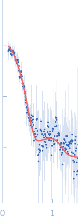 Note: Data are of very-low quality. The experimental molecular weight cannot be obtained/confirmed from the SAXS data data. Due to the low concentration, the data contains noise in the sample—the complex of Mtb. UvrA dimer and UvrB dimer were purified by co-expressing His-tagged Mtb. UvrA and untagged Mtb.UvrB protein in BL-21 cells. The untagged UvrB forms a complex with UvrA (pre-initiation complex) and is purified. Further purification was performed by size exclusion chromatography using a superose 6 10/300 GL column, which shows the protein's equimolar and homogenous solution—the calculated molecular weight of the Mtb. UvrA2B2 complex using SEC is 343kDa.
