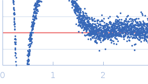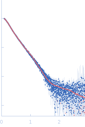 Molecular weight has been inferred through Volume of Correlation (Vc). Sample molecular weight and monodispersity has been independently confirmed through static light scattering (SLS). 16 successive frames were collected through the sample elution peak (from a total of 600 frames).