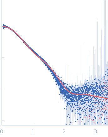 SAXS experiments were performed at the beamline B21 of the Diamond Light Source (Harwell Campus, UK) (Cowieson et al, 2020). Samples of 45 µl of 6His-tagged and untagged DS6AGH19-Ami2B protein at 5.6 and 5.9 mg/ml were loaded into a Sodex KW-403 column and a SRT-C SEC-300 (Sepax) column, respectively, equilibrated in buffer (20 mM Tris pH 8.0, 150 mM NaCl and 1 mM DTT) and connected to an Agilent 1200 HPLC system at 18 °C. Continuously eluting samples were exposed for 3 s in 10 s acquisition blocks using an X-ray wavelength of 1 Å, and a sample to detector (Eiger 4M) distance of 3.7 m. The data covered a momentum transfer range of 0.0032 < q < 0.34 Å−1. The frames recorded immediately before elution of the sample were subtracted from the protein scattering profiles. The Scåtter software package (www.bioisis.net) was used to analyse data, buffer-subtraction, scaling, merging and checking possible radiation damage of the samples. The Rg value was calculated with the Guinier approximation assuming that at very small angles q < 1.3/Rg. The particle distance distribution, Dmax, was calculated from the scattering pattern with GNOM, and shape estimation was carried out with DAMMIF/DAMMIN, all these programs included in the ATSAS package. The proteins molecular mass was estimated with GNOM. Interactively generated PDB-based homology models were made using the program COOT by manually adjusting the X-ray structures obtained in this work, into the envelope given by SAXS until a good correlation between the real-space scattering profile calculated for the homology model matched the experimental scattering data. This was computed with the program FoXS.