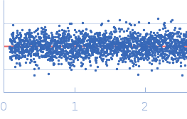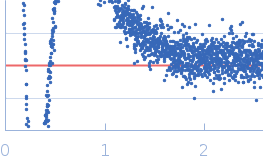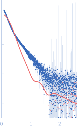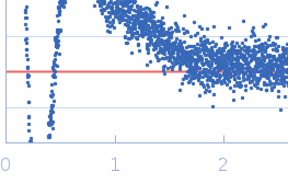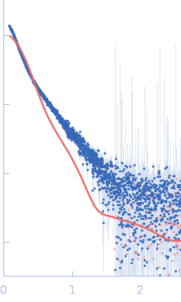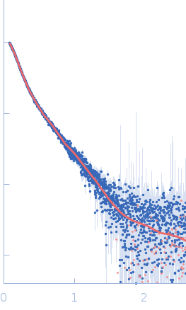 Molecular weight has been inferred through Volume of Correlation (Vc). Sample molecular weight and monodispersity has been independently confirmed through static light scattering (SLS). 16 successive frames were collected through the sample elution peak (from a total of 600 frames). |