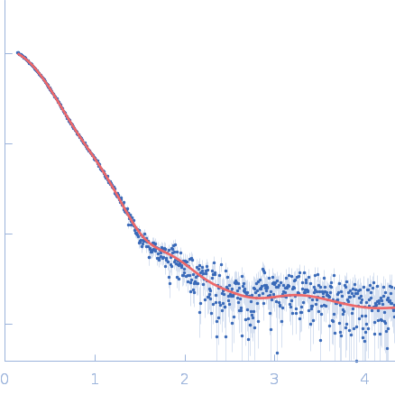 SAXS data from solutions of ArgC in 20 mM HEPES, 300 mM NaCl, pH 8 were collected on a Xenocs Xeuss 2.0 Q-Xoom instrument at the Center for Structural Studies, Heinrich-Heine-University (Düsseldorf, Germany) using a Pilatus3 R 300K detector at a sample-detector distance of 0.6 m and at a wavelength of λ = 0.154 nm (I(s) vs s, where s = 4πsinθ/λ, and 2θ is the scattering angle). Solute concentrations ranging between 1.2 and 10 mg/ml were measured at 10°C. 18 successive 600 second frames were collected. The data were normalized to the intensity of the transmitted beam and radially averaged; the scattering of the solvent-blank was subtracted.