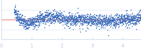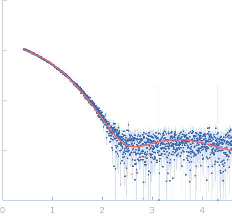 Synchrotron SAXS data from solutions of crTPpart2 of ArgC in 20 mM HEPES, 300 mM NaCl, pH 8 were collected on the EMBL P12 beam line at PETRA III (DESY; Hamburg, Germany) using a Pilatus 6M detector at a sample-detector distance of 3 m and at a wavelength of λ = 0.124 nm (I(s) vs s, where s = 4πsinθ/λ, and 2θ is the scattering angle). Solute concentrations ranging between 0.6 and 8.6 mg/ml were measured at 10°C. 40 successive 0.095 second frames were collected. The data were normalized to the intensity of the transmitted beam and radially averaged; the scattering of the solvent-blank was subtracted. The low angle data collected at lower concentrations were extrapolated to infinite dilution and merged with the higher concentration data to yield the final composite scattering curve.