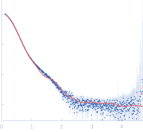 The trace was processed with Chromixs. The IFT was computed in BioXtas-RAW 2.3.0 using DENSS. The Dmax was set to 162 Angstroms. GNOM gives a similar Dmax at a qmax of 0.3 A^-1. |