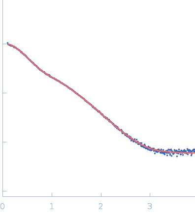 The low angle data collected at lower concentration were merged with the highest concentration high angle data to yield the final composite scattering curve.