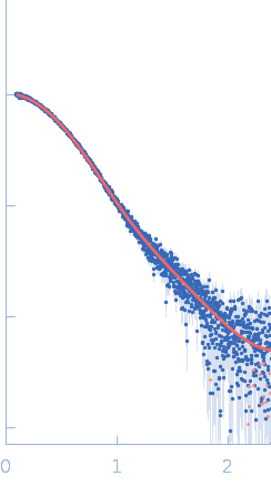Synchrotron SAXS data from solutions of Phosphoglycerate kinase enzyme in 50 mM sodium phosphate, 500 mM NaCl, 500 mM imidazole, and 1 mM phenylmethylsulfonyl fluoride (PMSF) at pH 8.5 were collected on the B21 beam line at the Diamond Light Source (Didcot, UK) using a Eiger 4M detector at a sample-detector distance of 3.7 m and at a wavelength of λ = 0.094 nm (I(s) vs s, where s = 4πsinθ/λ, and 2θ is the scattering angle). In-line size-exclusion chromatography (SEC) SAS was employed. The SEC parameters were as follows: A 50.00 μl sample at 6 mg/ml was injected at a 0.07 ml/min flow rate onto a GE Superdex 200 Increase 10/300 column at 15°C. 620 successive 3 second frames were collected. The data were normalized to the intensity of the transmitted beam and radially averaged; the scattering of the solvent-blank was subtracted.
