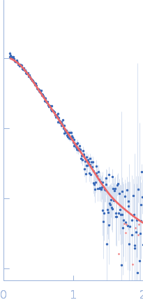 SAXS data from solutions of EGFR kinase domain duplication mutant in 20 mM HEPES, 250 mM NaCl, 250 mM KCl, pH 8 were collected on a Rigaku MicroMax-007HF instrument (Yale University, New Haven, United States) using a Rigaku PSAXS Nano detector at a sample-detector distance of 0.5 m and at a wavelength of λ = 0.1542 nm (I(s) vs s, where s = 4πsinθ/λ, and 2θ is the scattering angle). One solute concentration of 1.60 mg/ml was measured at 4°C. Three successive 7200 second frames were collected. The data were normalized to the intensity of the transmitted beam and radially averaged; the scattering of the solvent-blank was subtracted.