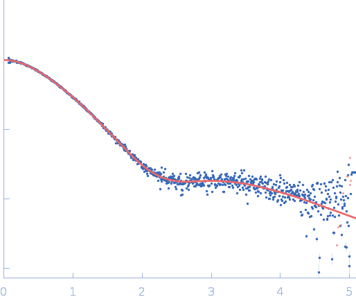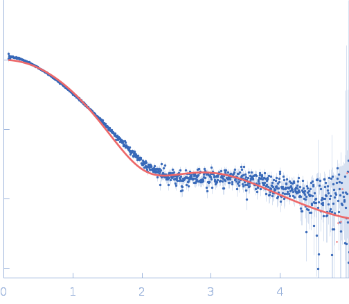 Synchrotron SAXS data from solutions of Disordered repeats-in-toxin domain Block V of Bifunctional hemolysin/adenylate cyclase in 50 mM Tris, 5 mM DTT, pH 7.5 were collected on the BL4-2 beam line at the Stanford Synchrotron Radiation Lightsource (SSRL) storage ring (Menlo Park, CA, USA) using a Pilatus3 X 1M detector at a sample-detector distance of 1.7 m and at a wavelength of λ = 0.1127 nm (I(s) vs s, where s = 4πsinθ/λ, and 2θ is the scattering angle). One solute concentration of 10.00 mg/ml was measured at 21.9°C. 500 frames were collected with an exposure time of 2 seconds. The data were normalized to the intensity of the transmitted beam and radially averaged; the scattering of the solvent blank was subtracted.