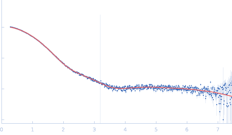 The data were normalized to the intensity of the transmitted beam and radially averaged; the scattering of the solvent-blank was subtracted.